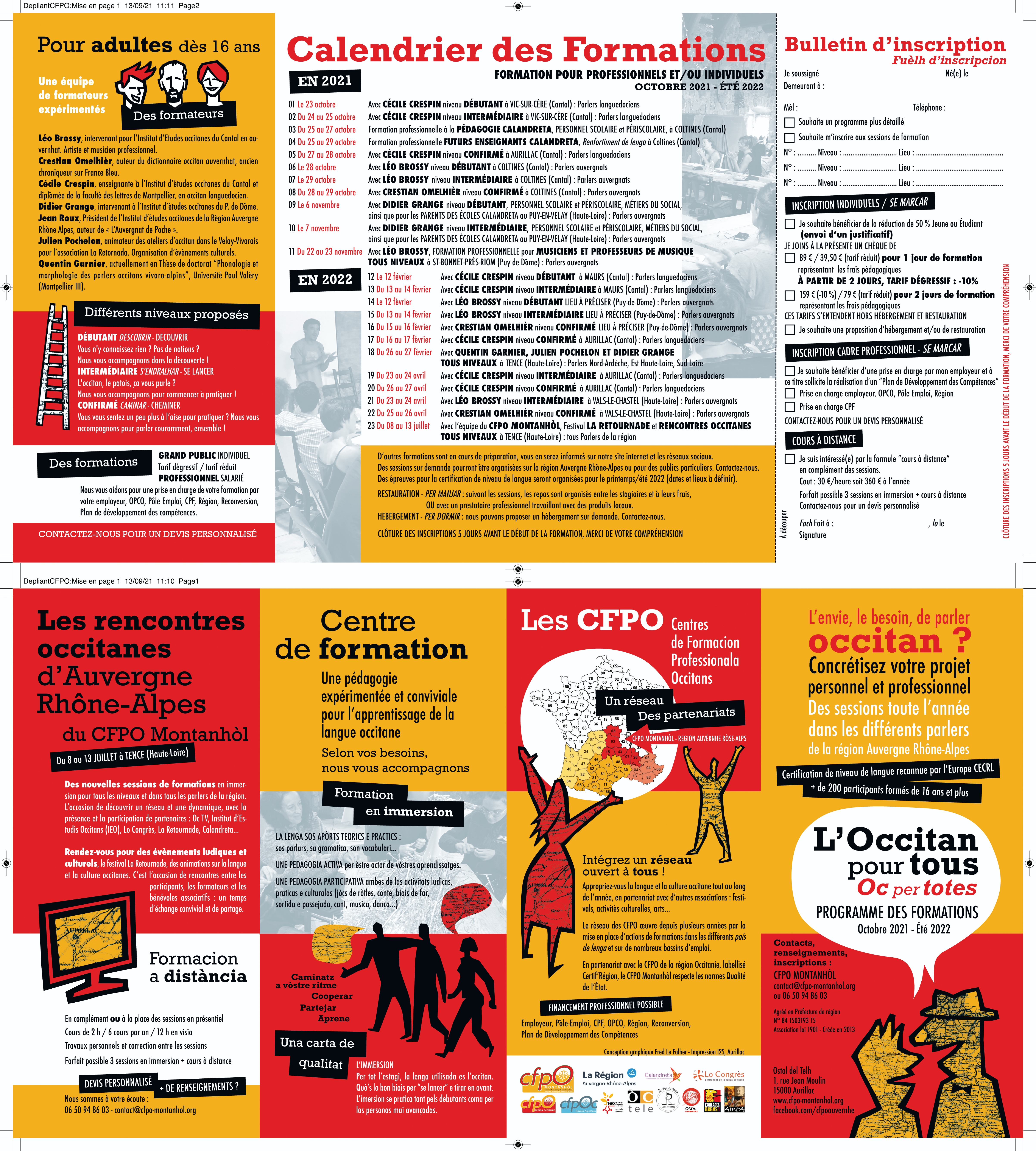 Pour vous inscrire sur une ou plusieurs sessions de formation, vous pouvez remplir le bulletin d’inscription en le téléchargeant ci-dessous et nous le renvoyer par mail à l’adresse : contact@cfpo-montanhol.org